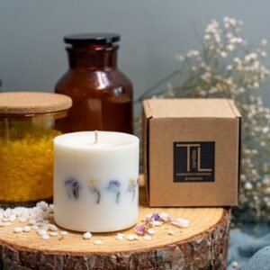 - Ingredients: Natural soy wax, lead-free cotton wick, dried flowers