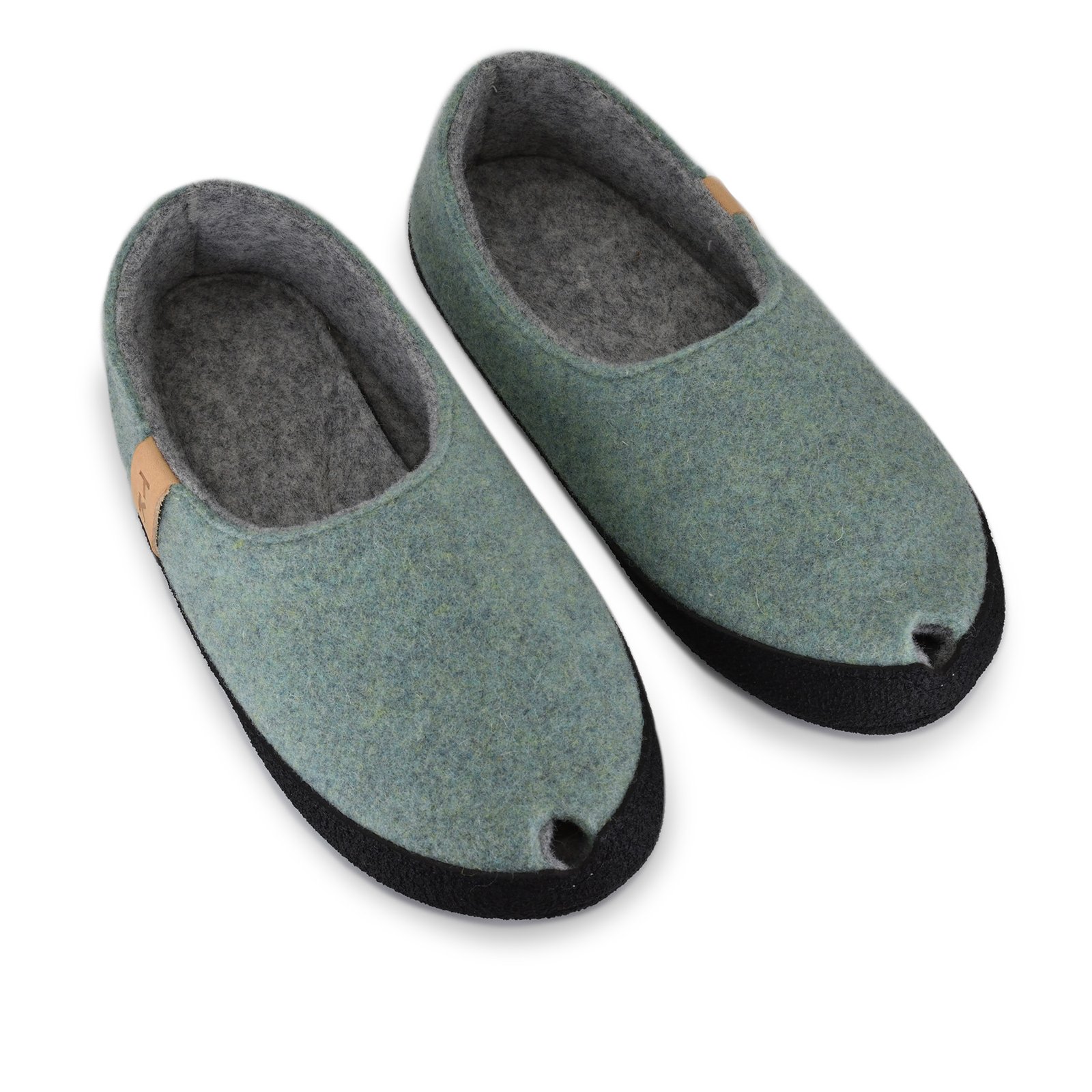 The natural wool felt upper and lining create breathable warmth and softness that adapts to your feet. The closed heel and toe add stability and coziness, while the peek-hole detail ensures ventilation. Inside, a supportive insole with a slightly raised heel brings balance and lightness to every step — the kind of comfort that feels like walking on clouds.